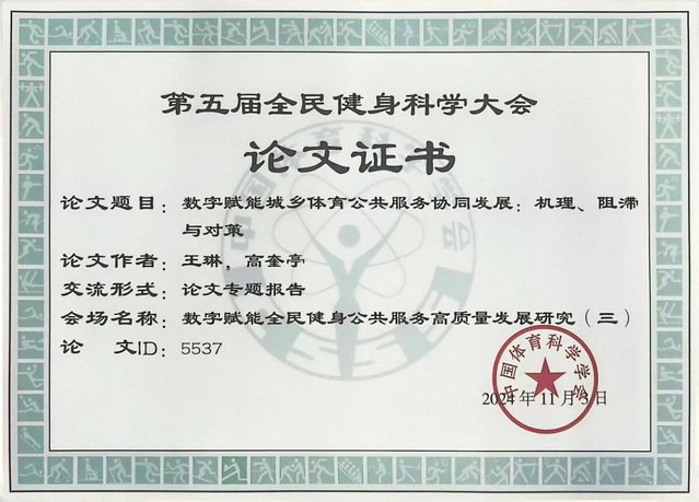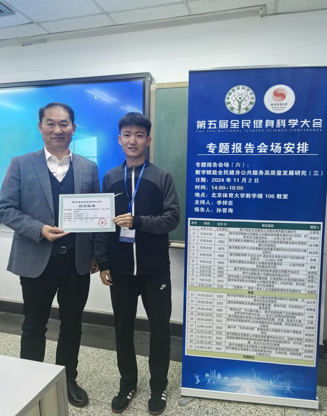 11月1-3日,由中国体育科学学会主办、北京体育大学承办的“第五届全民健身科学大会”在北京体育大学召开。我院运动2203班学生王琳应邀参加大会并在“数字赋能全民健身公共服务高质量发展研究”会场以《数字赋能城乡体育公共服务协同发展:机理、阻滞与对策》(指导教师:高奎亭)为题做专题汇报,这是近年来体育学院学生科研论文首次被国家一级学术会议所录用。