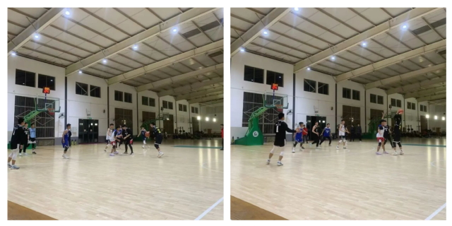 赛场上,同学们努力拼抢,默契配合,每一次传球、投篮、防守,都是力量、速度、技巧与智慧的较量。他们在球场上挥洒汗水,篮球与地面撞击声、观众同学的助威呐喊声交织出一曲热血的乐章,紧张而热烈的气氛在整个赛场上空弥漫开来。