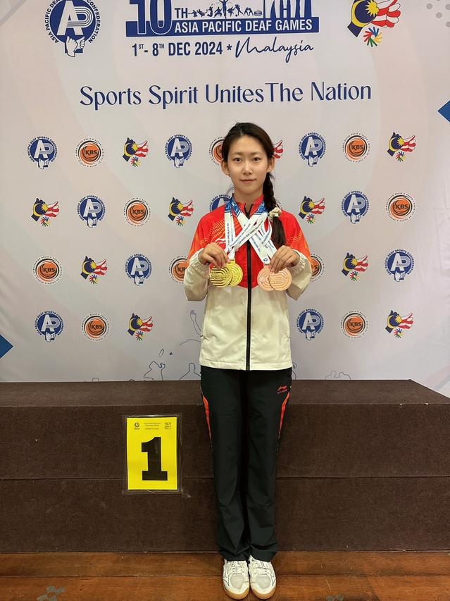 11月30日至12月9日,2024年亚太听障运动会在马来西亚吉隆坡举行。我院学子王钰童一路过关斩将最终夺得乒乓球比赛女子团体金牌、女子双打金牌,单打和混双铜牌。