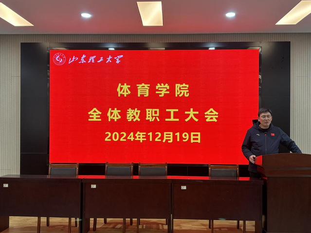 副院长杨刚就本学期教学工作、专业建设、智慧体测中心运营、体质测试、竞赛成绩、师范类专业建设和省一流学科建设等方面进行总结梳理,并对照高质量发展目前完成情况进行分析,指出了当前存在问题与挑战,下步争取在国家一流课程、省部级教学项目、专业一流建设和师范类认证工作实现新突破。