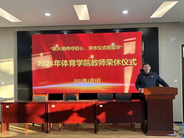 朱银飞作为青年教师代表向三位荣休教师表达谢意、敬意和祝福,他表示,老教师将自己的青春年华献给了教育事业,把自己的热情和智慧献给了莘莘学子,既是我们的同事,又是我们的长辈,在老教师身上学到了严谨治学、一丝不苟的工作作风,青年教师定会继续发扬优良传统和高尚精神,争做出彩体育人。