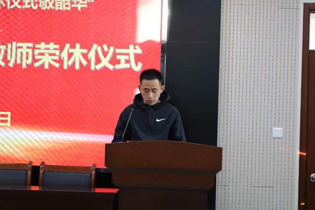 郭涛向三位荣休教师表示诚挚的感谢与美好的祝福,他希望年轻教师们以老教师为榜样,不负韶华,以梦为马,践行爱岗敬业,强化责任担当,不断提升自身教学水平与综合能力,祝愿荣休教师享受天伦之乐,感受生活的美好,在回忆起过去的岁月时感到自豪与满足。