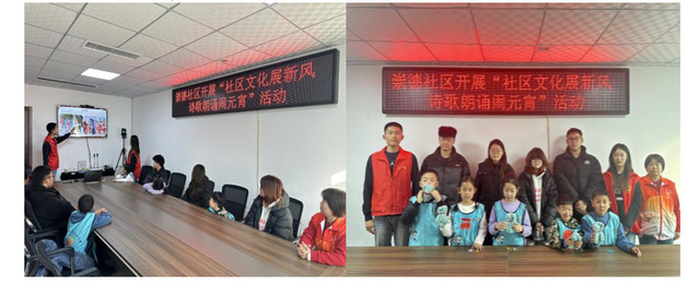 春节的余韵还在大街小巷回荡,元宵节的热闹已迫不及待地登场。为了丰富社区居民的文化生活,营造浓厚的节日氛围,2025年2月12日,我们在崇德社区活动中心开展了“社区文化展新风,诗歌朗诵闹元宵”活动。我作为本次活动的讲解员为社区的小朋友讲解了元宵节的起源和传统习俗,带领他们进行了猜灯谜和飞花令的活动。本次活动积极弘扬了中华优秀传统文化,让小朋友们在享受快乐假期的同时也加深了文化认同,坚定文化自信。