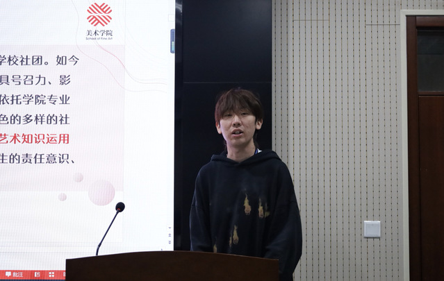 随后,迟乃榛结合自身获奖经历,分享了“艺术赋能环保,创意再生价值”公益志愿服务的核心理念,他们通过多元化艺术实践,构建了“创意+环保+公益”三位一体美育平台,探索出了艺术创作与可持续发展的创新融合道路,引发了我院学生的深刻思考,为大家将自身专业特长与可持续发展道路接轨融合提供了新颖思路。