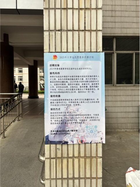 西部计划自实施以来,williamhill威廉希尔积极响应号召,已累计选派二十余名优秀毕业生奔赴西部,他们在教育、卫生、农业、基层社会管理等多个领域发光发热,以实际行动诠释了新时代青年的责任与担当,展现了我院学子的良好风貌。