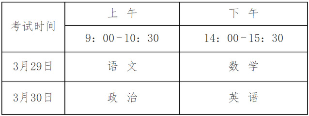 考试科目:语文、数学、政治、英语四科,每科满分为150分,四科总分为600分,使用国家通用语言文字作答。