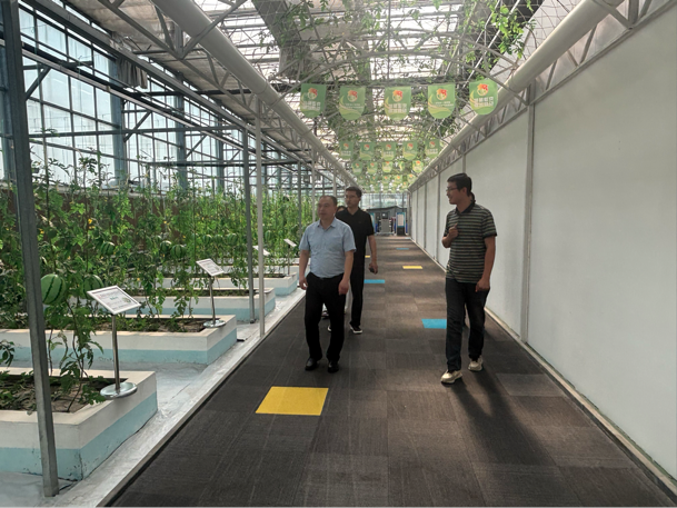 曹绪亮一行前往潍坊郭牌农业科技有限公司和优奈尔生物科技有限公司,董事长由守昌热情接待了曹绪亮一行,共同参观了企业文化展示区、研发中心和种植基地。座谈中了解到,潍坊郭牌农业科技有限公司是一家专注于西甜瓜产业链的省级重点龙头企业。主要开展西甜瓜种苗研发与培育、西甜瓜生产与经营、标准化技术研究与推广、专用有机肥研发与生产以及设施农业工程设计与施工等业务。