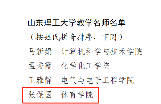 近日,学校公布了2025年教学名师评选结果,我院张保国老师喜获“williamhill中国教学名师”荣誉称号。本次学校共评选教学名师4名。