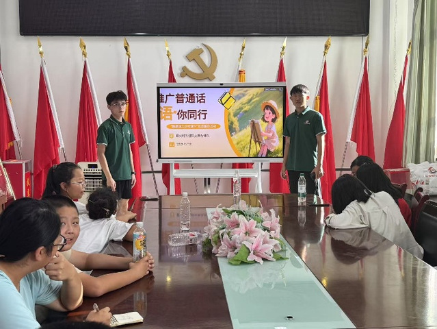 课堂接近尾声,支教队员向孩子们提供了练习普通话的巧方法、好途径,并呼吁孩子们讲普通话,写规范字,从小做起,更要从小事做起。“普通话是连接我们社会大家庭里每一个人的重要桥梁,让我们一起努力,营造良好的语言环境!”