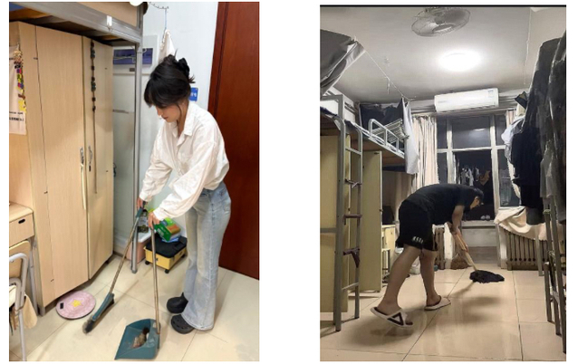 在卫生大扫除中,学生分工协作、积极配合,对宿舍公共区域、卫生间、洗漱间等进行彻底清理,并对个人物品进行归类整理,保持桌面、地面整洁有序。在学生们的努力下,宿舍变得更加整洁,这不仅极大地提升了居住的幸福感,更让大家在劳动协作中加深了情谊,增强了归属感与集体荣誉。
