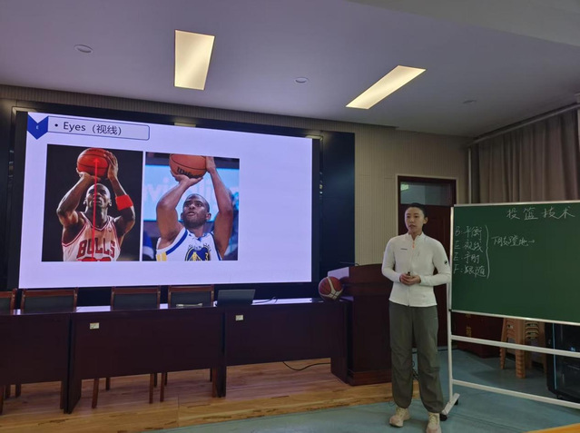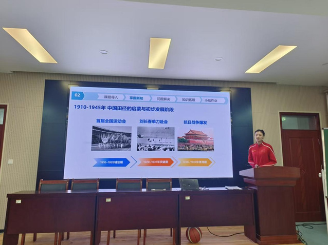 活动现场,苗舒蓓、宋玉洁两位青年教师依次进行课堂教学展示,呈现了风格鲜明的教学片段。苗舒蓓以“如何提高投篮命中率”为核心主题,通过一组真实的学生投篮命中率数据自然导入课堂,不仅系统讲解了篮球投篮的BEEF原则与命中率影响因素,还创新结合NBA球星比赛视频,引导分析高命中率背后的技术逻辑,并以四字口诀提炼技术要领,让专业知识既严谨又生动,充分彰显篮球运动的独特魅力宋玉洁则聚焦“中国田径的萌芽与发展”,以时间为轴梳理1910年至今的中国体育发展脉络,尤其以《天津青年》杂志提出的“奥运三问”为情感切入点,生动再现了中国百年体育事业从落后到崛起、由弱变强的奋斗历程,传递出深厚的体育文化底蕴。