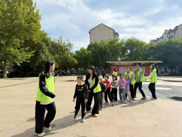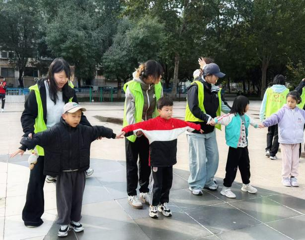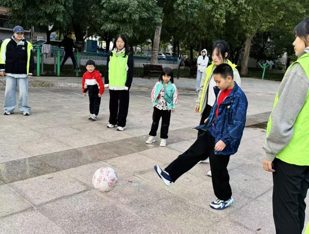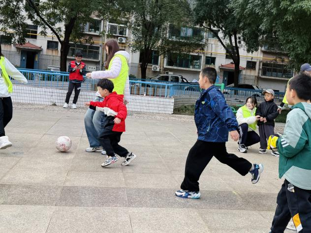 活动伊始,志愿者们组织社区儿童开启了丰富多彩的体育游戏。从经典游戏“老鹰捉小鸡”到徒手操热身运动。志愿者们细致演示扩胸、转体等规范动作,并及时纠正姿势,孩子们学得认真又投入,清脆的笑声与轻快的口令声,让活动场地充满活力,也为后续环节做好了准备。