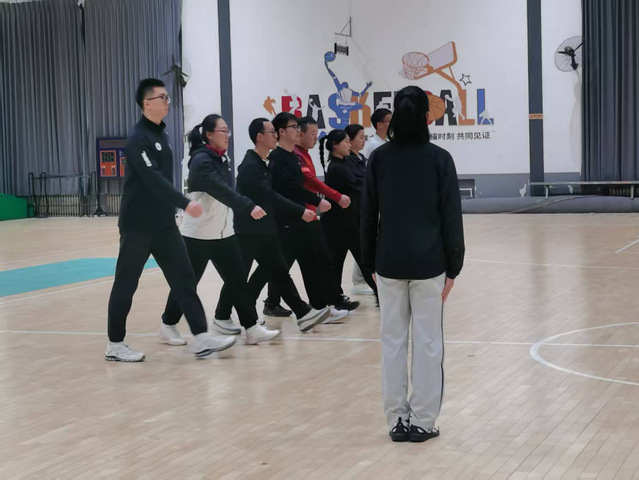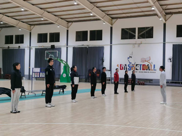 接着,青年教师按照抽签顺序依次进行队列队形和自编操教学展示。