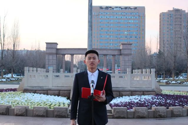 随后,在学生代表毕昊堃的领誓下,全体学生举起右拳庄严宣誓,铿锵誓言传递出青年体育人的坚定信念。宣誓完毕,学院领导与各部门负责人同国旗护卫队代表合影留念,本次升旗仪式圆满落幕。